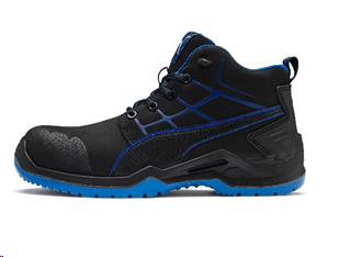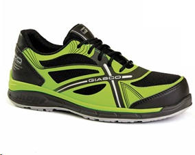 Sicherheitsschuh mit Fiberglasklappe und flexiblem Durchtrittsschutz.